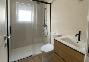 A cozinha, tornou-se funcional e moderna, oferecendo ampla arrumação, enquanto o WC foi totalmente renovado, mantendo um design clean e prático, adequado às necessidades da habitação.